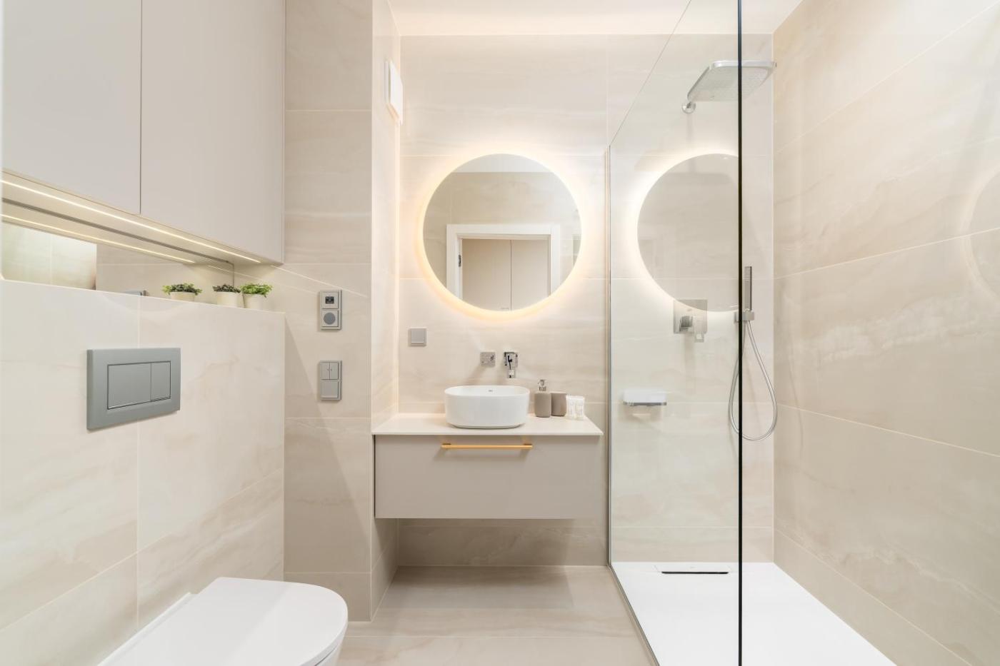 Apartament Premium z 1 sypialnią. The air-conditioned apartment features 1 bedroom and 1 bathroom with a walk-in shower and a hairdryer. In the well-fitted kitchenette, guests will find a stovetop, a refrigerator, a dishwasher and kitchenware. This apartment has a washing machine, flat-screen TV with streaming services, city views, as well as chocolate for guests. The unit offers 1 bed. Apartament - 2 osobowy. Powierzchnia pokoju ok.: 26 mkw.
